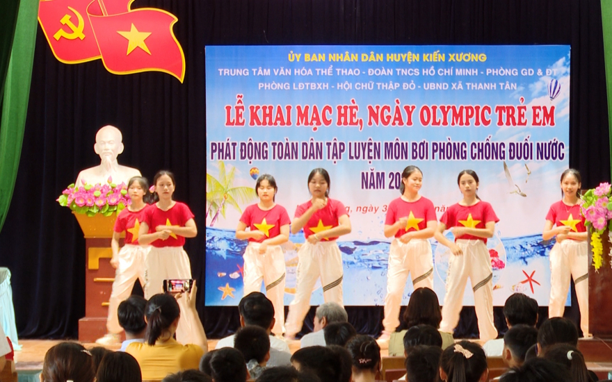 Tại xã Thanh Tân, Trung tâm Văn hóa - Thể thao, Đoàn Thanh niên, Phòng Giáo dục và Đào tạo, Phòng Lao động - Thương binh và Xã hội huyện Kiến Xương tổ chức lễ khai mạc mạc hè, ngày Olympic trẻ em và phát động toàn dân tập luyện môn bơi phòng, chống đuối nước năm 2024.