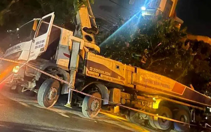 Hiện trường vụ tai nạn xe bồn chở bêtông sập cẩu