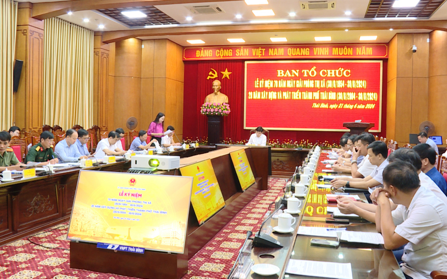 Chiều 21/6, đồng chí Phạm Văn Nghiêm, Phó Chủ tịch UBND tỉnh, Trưởng ban tổ chức Lễ kỷ niệm 70 năm Ngày giải phóng thị xã, 20 năm Xây dựng và phát triển thành phố Thái Bình chủ trì cuộc họp nghe UBND Thành phố báo cáo tiến độ tổ chức Lễ kỷ niệm.