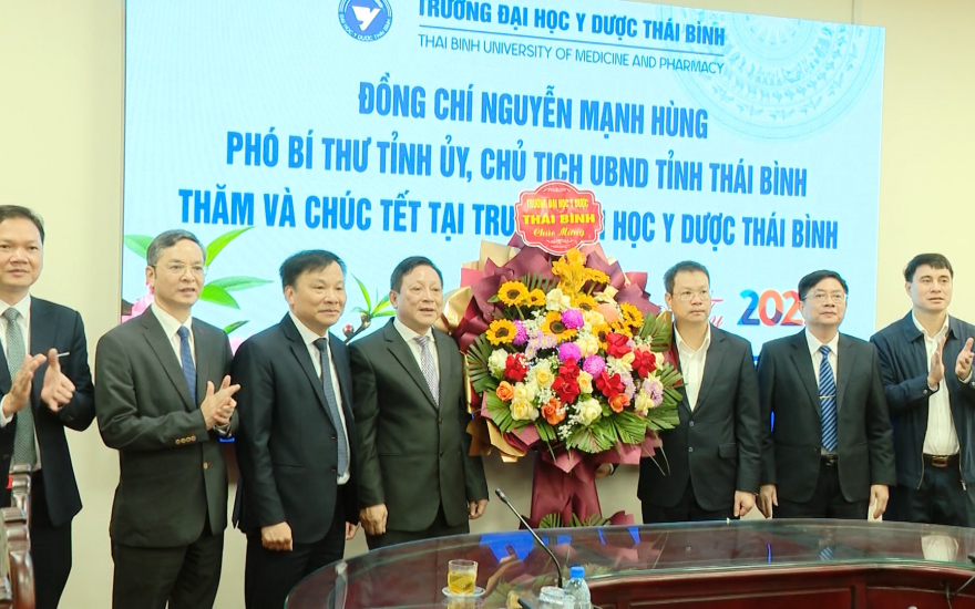 Nhân dịp Tết Nguyên đán Ất Tỵ 2025, sáng 24.1, đồng chí Nguyễn Mạnh Hùng, Phó Bí thư Tỉnh ủy, Chủ tịch UBND tỉnh tới thăm, động viên và chúc tết cán bộ lãnh đạo, tập thể y bác sĩ, giảng viên Trường Đại học Y Dược Thái Bình.