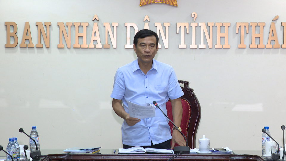Đồng chí Đặng Trọng Thăng, Bí thư Ban cán sự Đảng, Chủ tịch UBND tỉnh phát biểu tại hội nghị