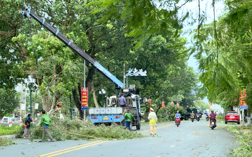 Với tinh thần khẩn trương, thành phố Thái Bình nỗ lực hoàn thành việc thu dọn vật cản, cây gẫy, đổ làm cản trở giao thông tại các tuyến đường phố trong ngày 08/9; tổ chức dựng, néo giữ cây xanh hoàn thành trong ngày 09/9.