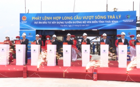 Sáng 27/2, UBND tỉnh Thái Bình phối hợp với nhà đầu tư dự án tổ chức lễ phát lệnh hợp long Cầu vượt sông Trà Lý nằm trong dự án xây dựng tuyến đường bộ...